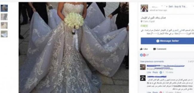 تفاجأ عدد من الفتيات والسيدات على أحد المجموعات بموقع Facebook الخاصة بهن بهدف بيع وشراء المستلزمات الخاصة، بصور لفستان زفاف "ريم" وضعته إحدى الفتيات مؤكدة في التعليقات أنه ملكا لريم، وأنها تنوي بيعه بـ100 ألف جنيها، وتأجيره بـ20 ألفا.