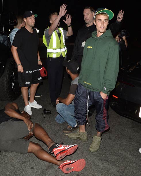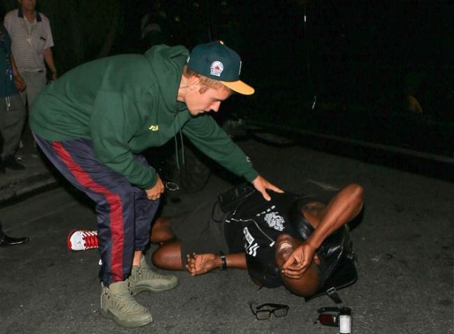 بيبر كان مغادرا الكنيسة لكن نظرا لتجمع عدد كبير من المصورين حول سيارته الضخمة، حاول الإبتعاد مسرعا ولم ينتبه فصدم أحدهم بطريق الخطأ ليسقط على الأرض، وعلى الفور ترجل بيبر من سيارته للإطمئنان على المصور ومحاولة إسعافه حسبما ذكر موقع PEOPLE.