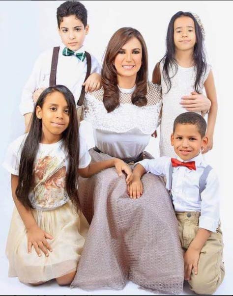 وفي صورة ثانية ظهرت تجلس وإلى جوارها مجموعة من الأطفال.