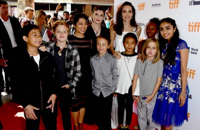 والتقطت الممثلة البالغة من العمر 42 عامًا، عدد من الصور على السجادة الحمراء مع أولادها؛ زهرة، وشيلوه، وفيفيان، ونوكس، وباكس، فيما تغيب عن الحضور ابنها مادوكس، وفقًا لما جاء على موقع ET.