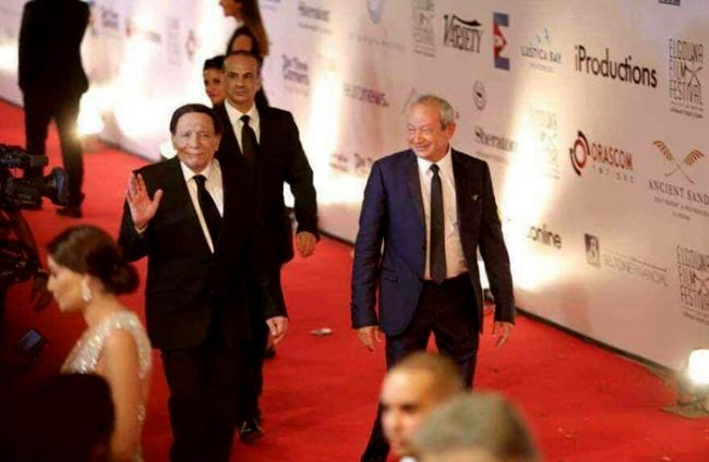 عادل إمام يتسلم تكريمه بمهرجان الجونة.. يطلب من أبناءه مصافحة ساويرس