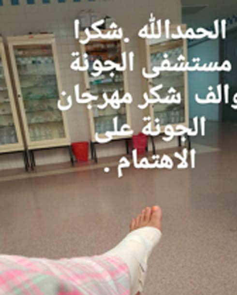 وتم نقل لطيفة لمستشفى الجونة، حيث تم تشخيص حالتها على أنها التواء في قدمها اليسرى، وتم وضعها في جبيرة لتجنب حدوث أي مضاعفات.