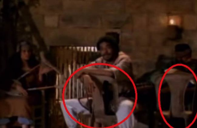 ولإثبات وجهة نظر الراحل يوسف شاهين، فإننا نلحظ أيضا في أحد لقطات فيلمه "الناصر صلاح الدين"، المتناول في مجمله لفكرة الحرب والسلام وتحرير القدس، وجود ساعة في يد البطل، في فترة تاريخية لم تشهد اختراع الساعات على الإطلاق.