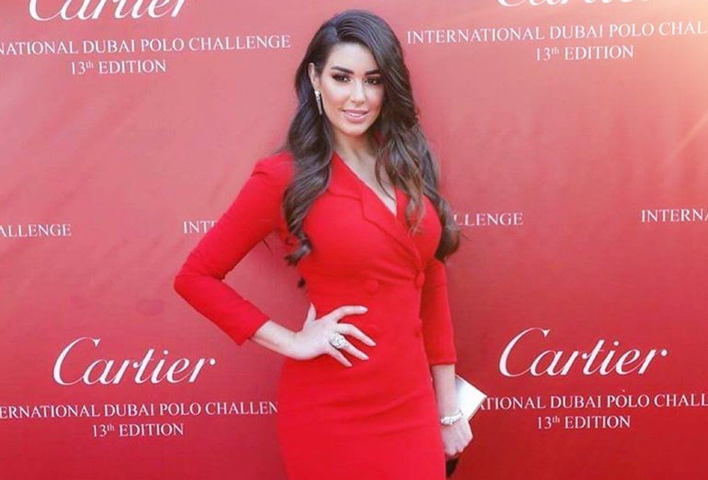 ظهرت بتصميم مشابه من ناحية الذيل من الجانبين الفنانة الشابة هنا الزاهد، ولكنها اختارته بخامة الستان الناعمة، منسدل الأكتاف، مكشوفًا من ناحية الصدر.