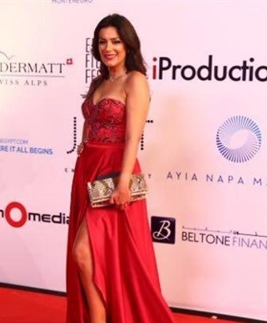 لفتنا اختيار النجمة المصرية يسرا الأحمر اللامع الميتاليك، مع حزام الخصر، والذيل الطويل، الممتد من كلا الجانبين، طويل الأكمام، وارتأت رفع شعرها للوراء، وفضلت أن تختار قيراط أذن بحجم كبير باللون الذهبي، بدلاً من العقد نظرًا إلى طول الأكمام.