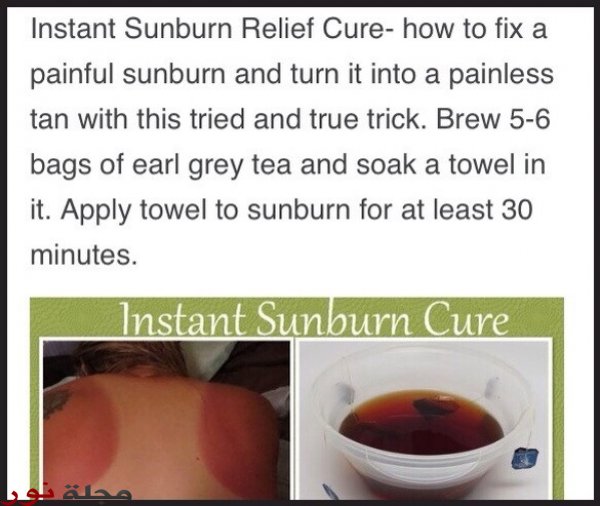 ضعي أكياس الشاي مباشرة على المنطقة المتضرّرة لتخفيف ألم الحروق، و إن الشاي الأسود هو الأنسب لعلاج الحروق.