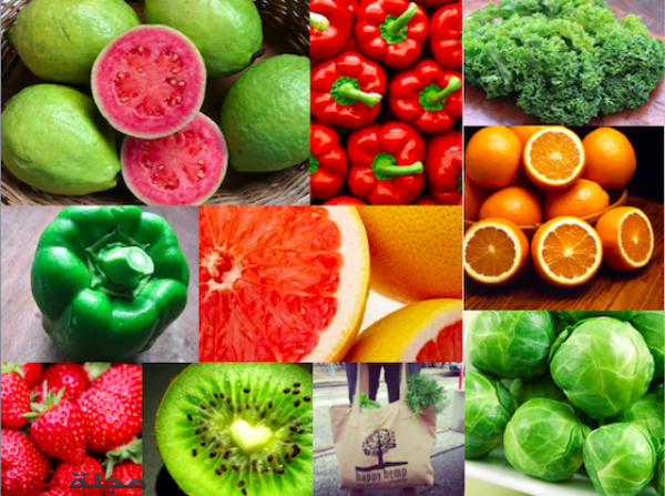 ومن المصادر الغنية بفيتامين c الفلفل الحلو، والبطاطا، والكرنب والسبانخ والطماطم.