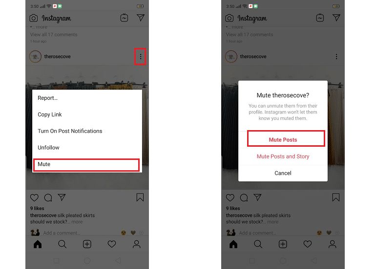- اضغط على خيار (إخفاء المنشورات) Mute Posts.