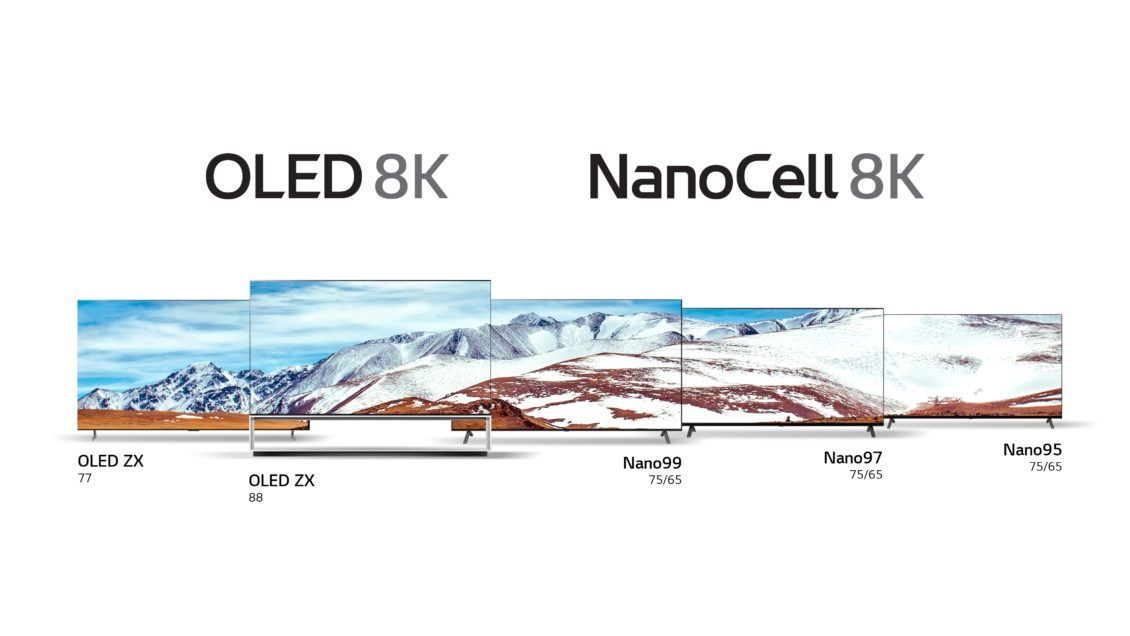 وأضافت إل جي أن سلسلة عام 2020 ستشمل أجهزة LG SIGNATURE OLED 8K TV بقياس 88 بوصة، و77 بوصة، والأجهزة المتقدمة LG NanoCell TV بقياسي 65 بوصة، و75 بوصة.