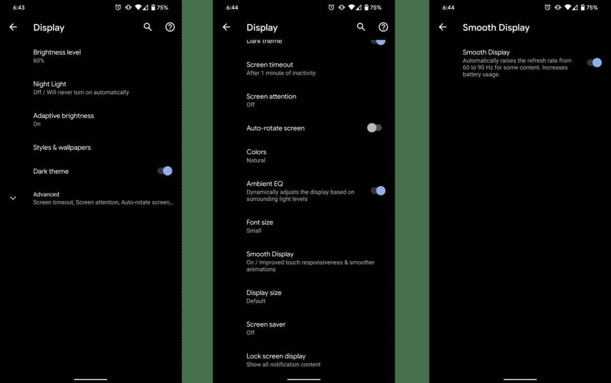 الجدير بالذكر أن خيار Smooth Display في هاتف Pixel 4 من جوجل يتغير تلقائيًا بين معدلي 60 و90 هرتزًا اعتمادًا على ما تفعله على الشاشة، ويعتبر بمثابة طريقة من طرق توفير طاقة البطارية. حيث إن التبديل إلى معدل 90 هرتزًا يكون في حالة لعب الألعاب التي تتطلب طاقة كبيرة ودقة عرض عالية، بينما المعدل الأقل 60 هرتزًا يكون في حالة الاستخدام العادية للهاتف.