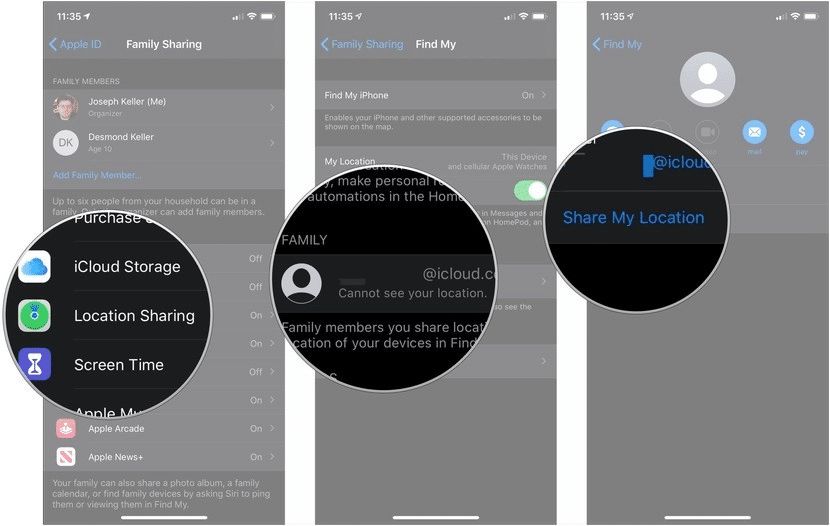 - أي شخص سيشارك موقعه معك يجب عليه أولًا تفعيل تطبيق (تحديد الموقع) Find My، وميزة (مشاركة العائلة) Family Sharing على هاتفه.