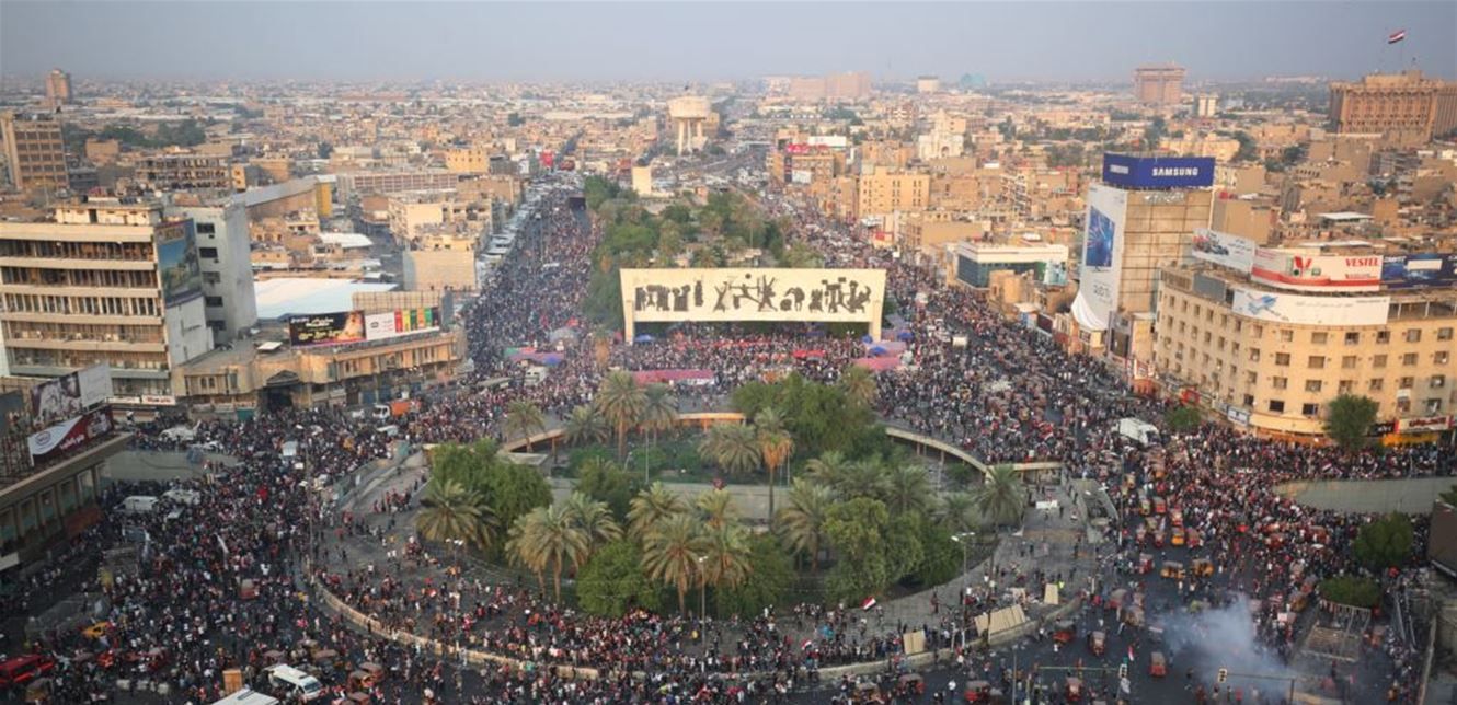 احتشد عشرات الآلاف من العراقيين في ساحة التحرير، اليوم الثلاثاء، في خامس يوم على التوالي من احتجاجات بعد تقارير عن قتل قوات الأمن لمحتجين في كربلاء ليل الإثنين ورفض رئيس الوزراء الدعوة لانتخابات مبكرة. وهذا هو أكبر تجمع في العاصمة منذ بدء الموجة الثانية من المظاهرات المناوئة لحكومة رئيس الوزراء عادل عبد المهدي والنخبة الحاكمة الجمعة.