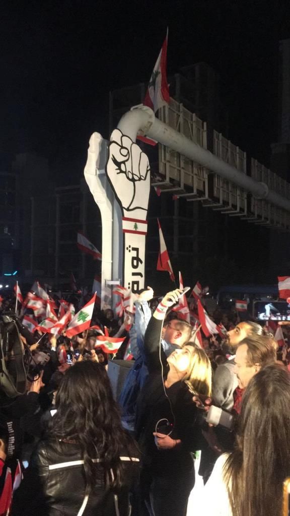 أزاح المحتجون في جل الديب، الستارة عن مجسم لما يعرف ب"قبضة الثورة" الذي رفعوه على المسلك الشرقي لأوتوستراد انطلياس، على وقع النشيد الوطني والأغاني الوطنية، في حضور عائلة ضحية حادثة خلدة علاء أبو فخر، عدد من الفنانين، حشد من أهالي المتن ووفود من مناطق عدّة، وسط انتشار للجيش والقوى الأمنية التي شكّلت خطّاً فاصلاً لتسهيل حركة السير.