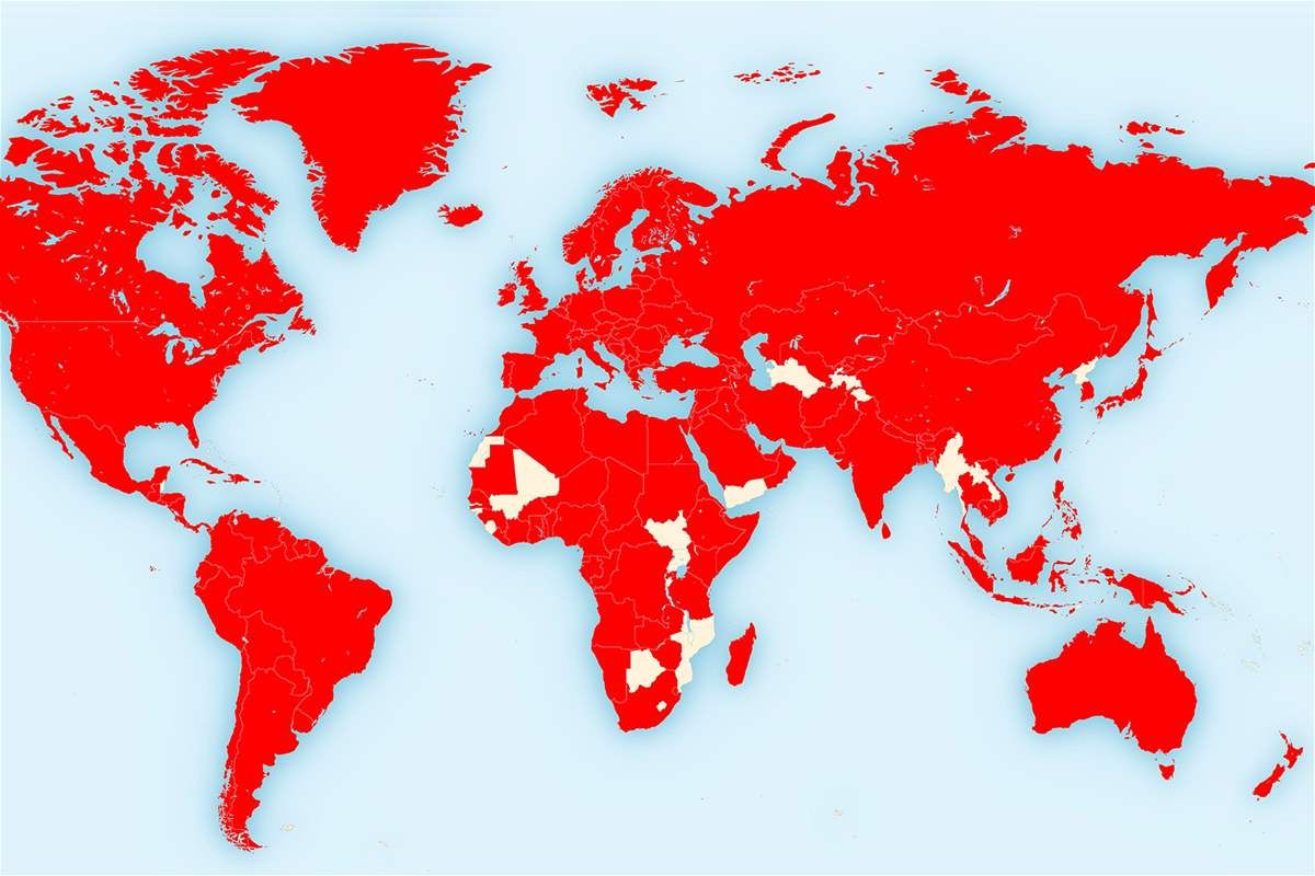 وبأقلّ من 100 يوم، تمكن "كورونا" المستجد من اكتساح كلّ قارات الكرة الأرضية الستّ، وغزو معظم ما فيها من دول ومناطق وجزر، ولم يبق أمامه إلا القليل ليصل بزحفه إلى قلة من الدول بقيت ناجية منه للآن، بحسب ما يتّضح من أحدث خارطة لانتشاره في العالم.